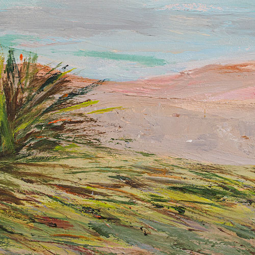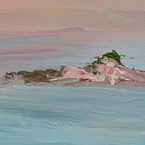 However, it’s the white-sand beaches, lapped by the turquoise seas that I am drawn to for my paintings. Here the colours are different to those at home. Sunset pinks, the green of the dune grasses, the deep blue of the sea and the clean calm colour of the sand.