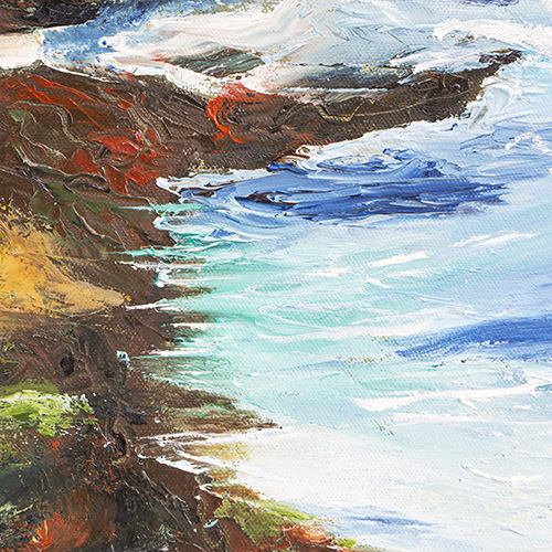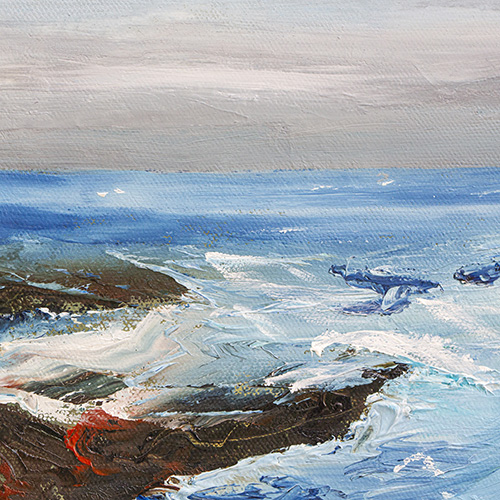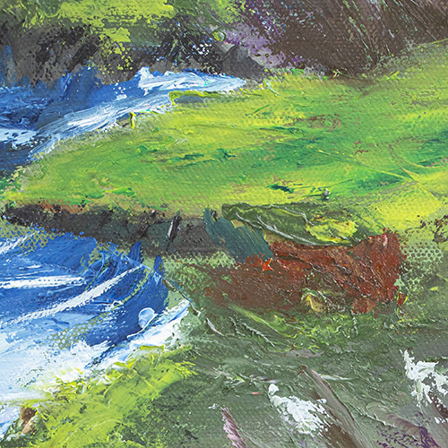 The sea on the West Coast of Scotland has been my muse for many of my paintings and she never tires. In this location it methodically and intentionally rushes its way through the rocks creating dark and light tones and a depth of colour that only nature can create.